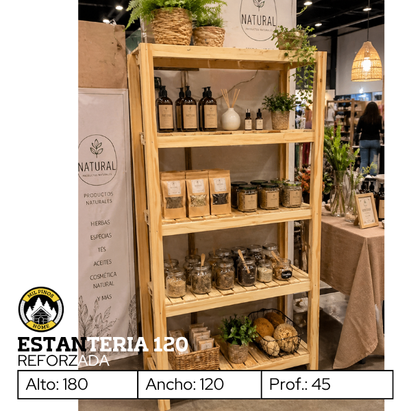 Esta estantería 120 refoerzada está diseñada para ofrecer alta capacidad de carga, organización y exhibición, siendo ideal tanto para espacios comerciales como del hogar.