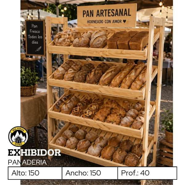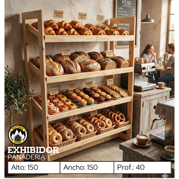 El exhibidor de panadería está diseñado para resaltar tus productos de forma ordenada, visible y atractiva, ideal para panaderías, cafeterías y emprendimientos que buscan una presentación profesional.