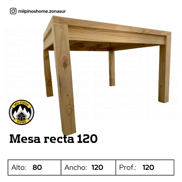 Mesa de patas cuadradas, reforzada y de gran estructura.