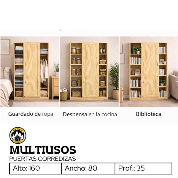 Este mueble multiusos con puertas corredizas está diseñado para ofrecer practicidad, orden y versatilidad en cualquier espacio. Su sistema de apertura permite optimizar el espacio, siendo ideal para ambientes modernos y funcionales.