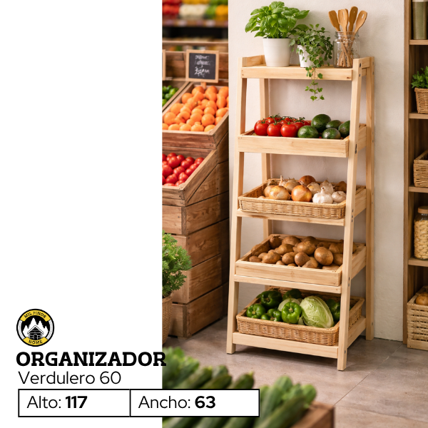 El Verdulero 60 es un mueble versátil diseñado para organizar, almacenar y exhibir de forma práctica y estética. Ideal para resaltar productos en tiendas o aportar orden y estilo en el hogar.