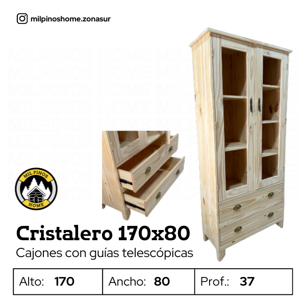 Hermoso mueble cristalero con detalles que realzan su belleza. Listo para pintar y para instalar los vidrios a tu gusto. Los cajones tiene correderas de excelente calidad, manijas y broches cobrizados!! Cuenta con dos puertas y dos estantes a un lado y 3 al otro. Un mueble que armoniza y le da mucho estilo y elegancia a tus espacios.